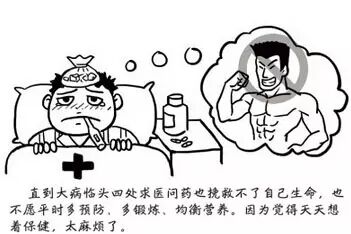直到大病临头四处求医问药也挽救不了自己的生命,也不愿平时多预防、多锻炼、均衡营养。