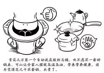 肯花几万块装一个自动洗屁股的马桶,也不愿买一套好锅具,可以让全家人摆脱高温高油,带来营养健康。