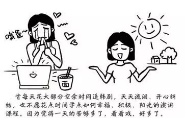 肯每天花大部分空余时间追韩剧,天天流泪,开心纠结,也不愿花点时间学习如何幸福、积极、阳光的演讲课程。