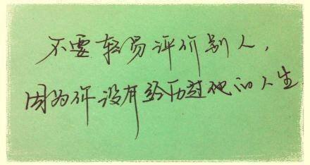别人有着怎样的生活,走什么样子的道路,旁人永远无法真正了解。所以,任何人都没有资格去指责评论别人,因为未曾真正的经历,就无法体会其中的一切。