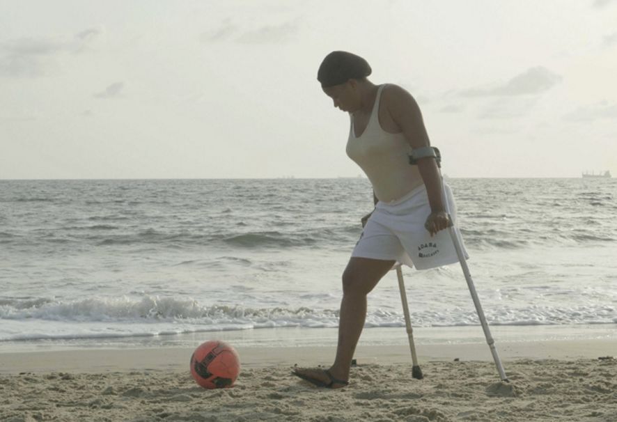 因为战争失去一条腿的姑娘,仍喜欢自己奋力在沙滩上追逐排球的样子。