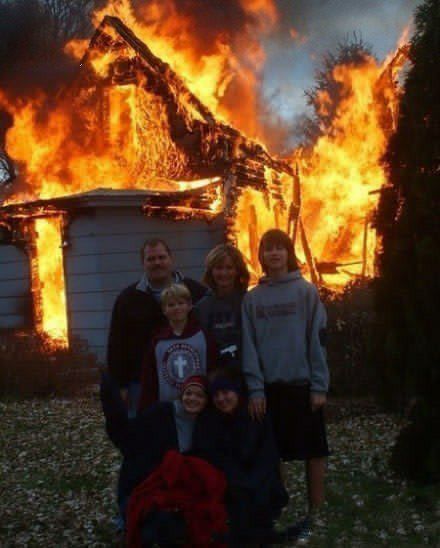 在美国有这样一家人,他们的家不小心失火了,火势越来越大,还好一家六口都逃了出来,